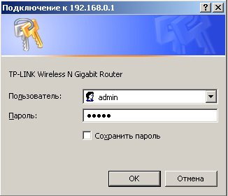 При помощи сетевого кабеля (из комплекта от TP-LINK TL-WDR4300), подключите маршрутизатор TP-LINK TL-WDR4300 одним из четырех портов LAN к сетевой карте Вашего компьютера. Через Internet Explorer перейдем по адресу: 192.168.0.1. В появившемся окне введите имя пользователя и пароль к устройству (по умолчанию имя пользователя и пароль - admin).
