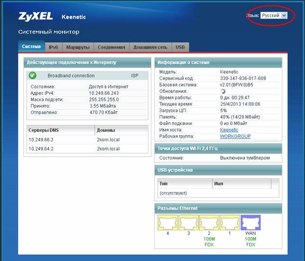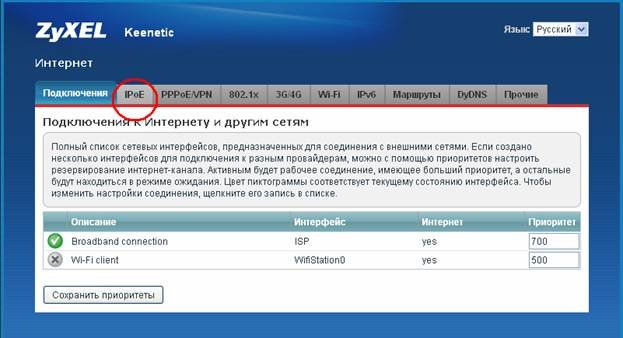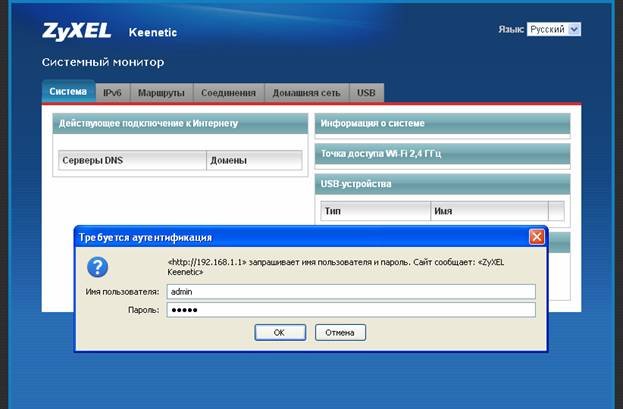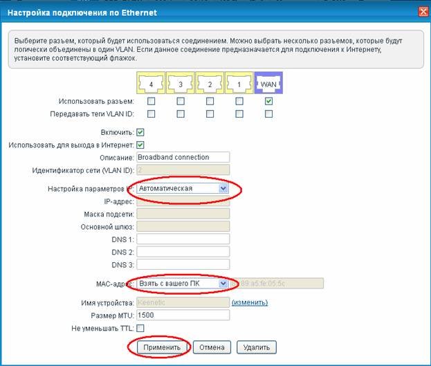 Настройка доступа в Интернет у интернет-центра ZyXel Keenetic: