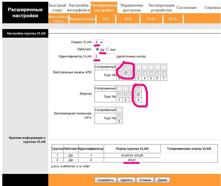 8, VCI - 35, bridge mode, этот канал будет для IPTV, значения даны для