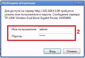 - Появится окно(2) с запросом "Логина (имени пользователя)" и "Пароля" (По-умолчанию: "Логин (имя пользователя)":admin; "Пароль":admin).