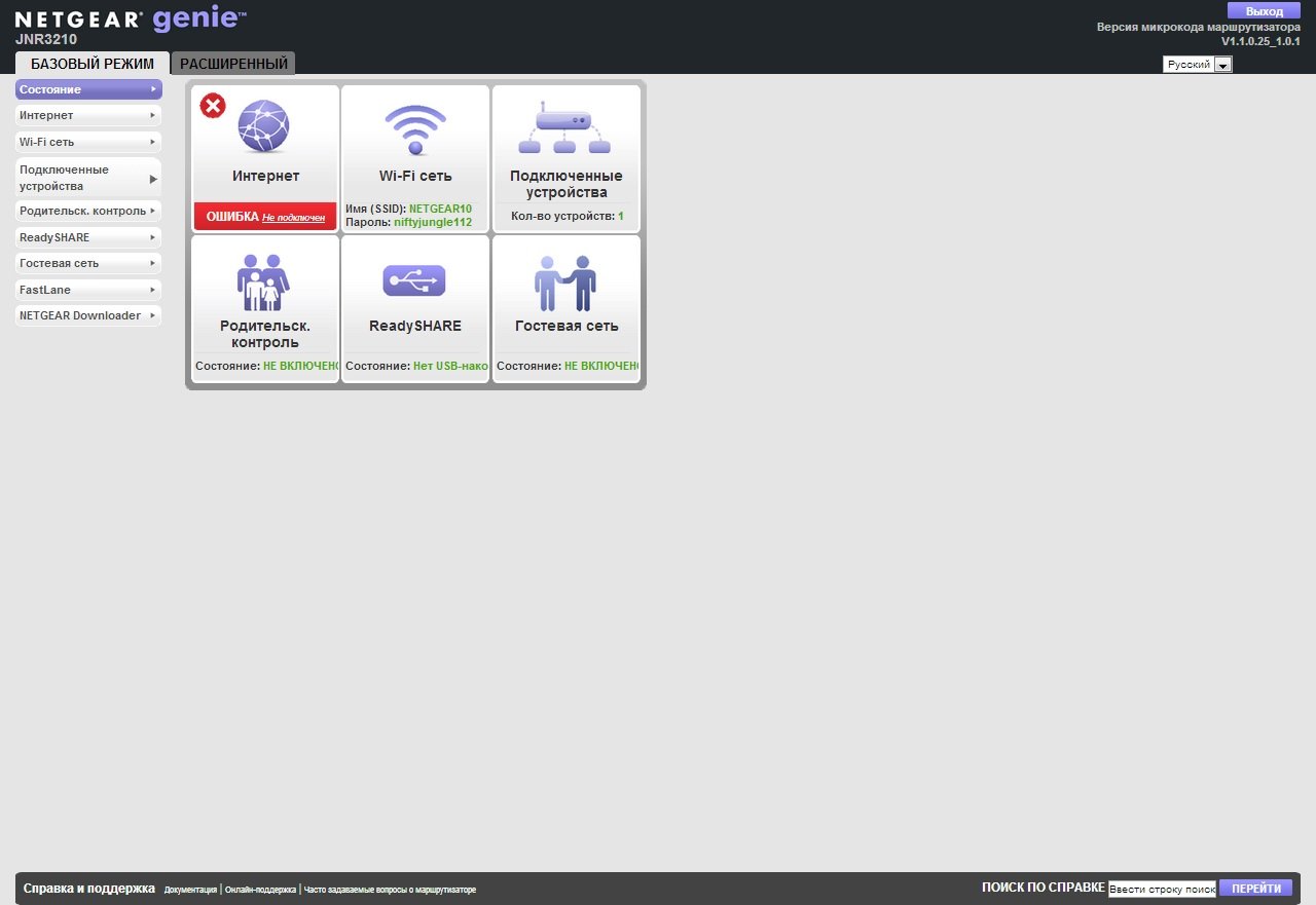 После этого у Вас открывается окно веб-интерфейса Netgear Centria WNDR4700. Здесь вы можете выбрать один из двух режимов настройки - «Базовый» и «Расширенный». Рассмотрим второй режим.