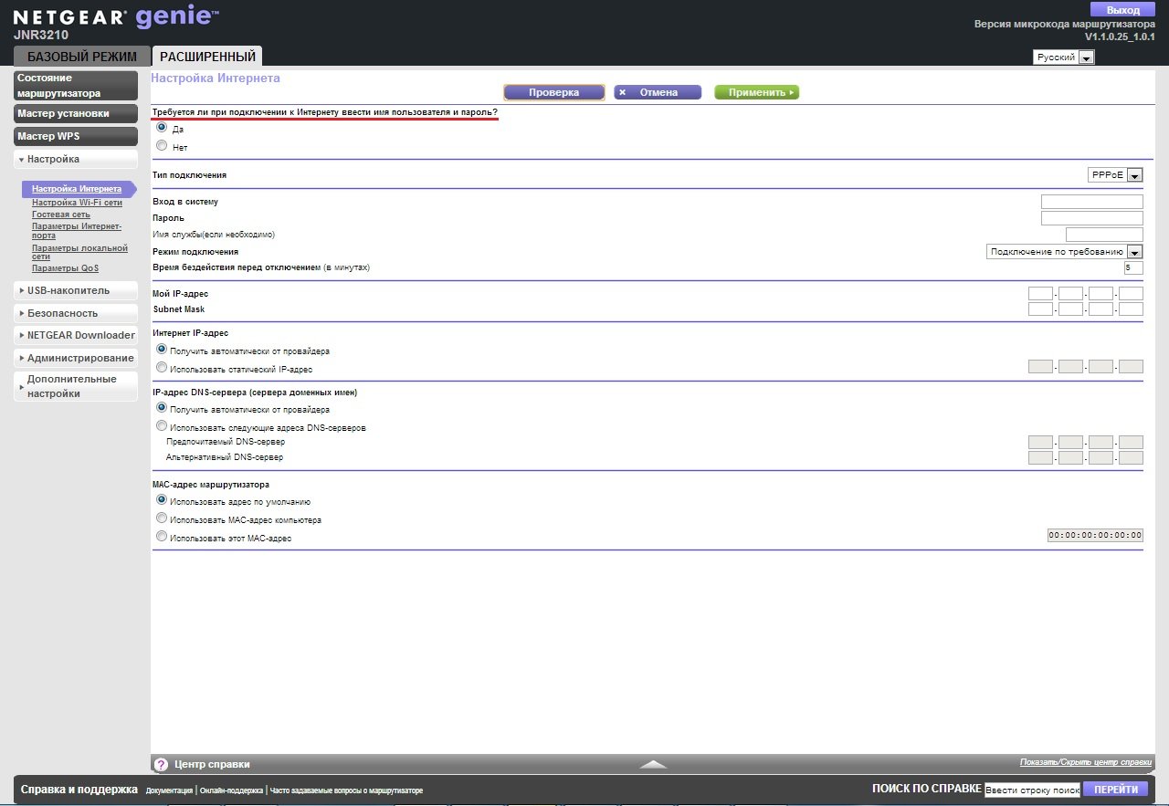 В зависимости от Вашего провайдера и его настроек необходимо выбрать тот или иной режим подключения. Если для подключения к интернету у Вашего провайдера требуется вводить логин и пароль, то в графе Требуется ли при подключении к Интернету ввести имя пользователя и пароль вы выбираете ДА (например, у Ростелеком, Билайн, Дом.ру, ТТК и т.д.). Если же вы подключаете роутер к другому устройству (на котором уже есть интернет) или тип Вашего подключения к интернету не требует ввода логина и пароля, то в этой графе ставите точку напротив НЕТ.