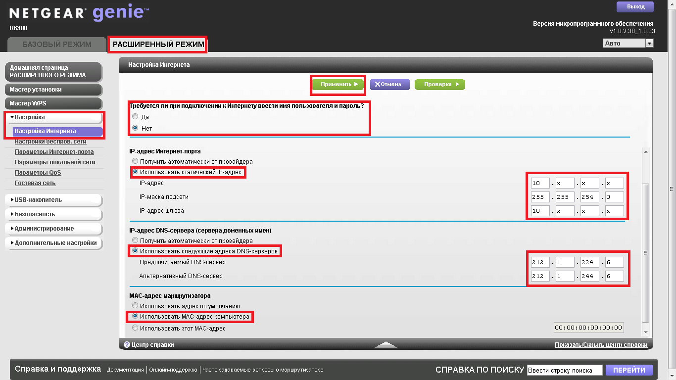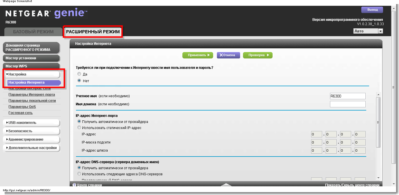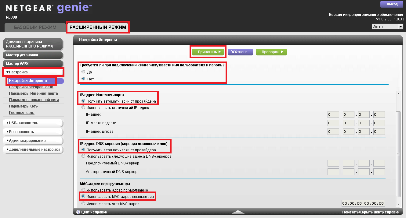 В интерфейсе роутера необходимо зайти во вкладку «Расширенный режим», далее «Настройка» - «Настройка интернета». После этого вам необходимо настроить ваш тип подключения к интернету в зависимости от того, который используется в вашем подключении по договору: