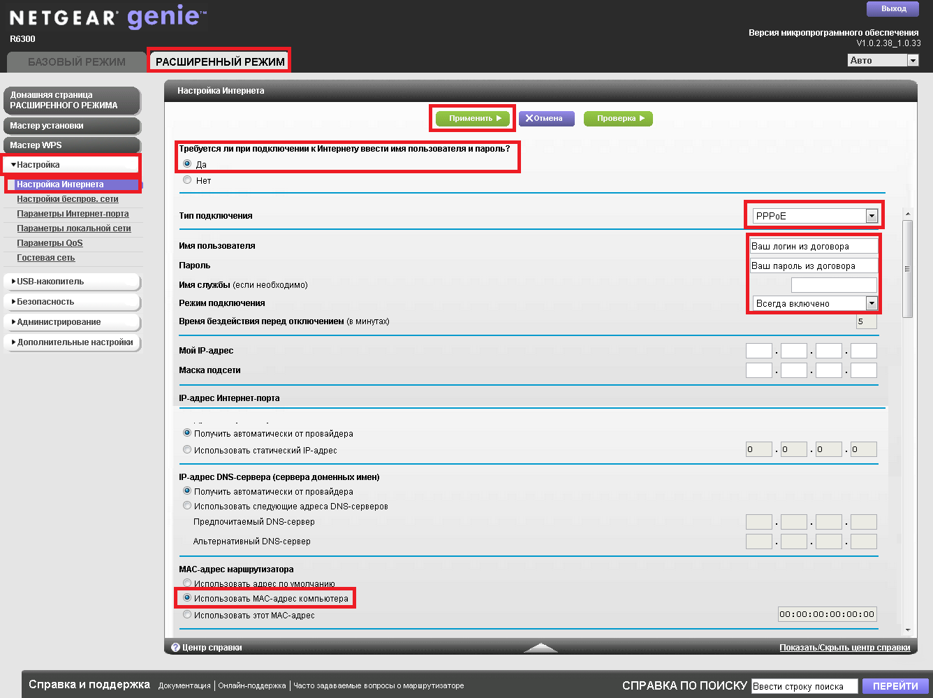 - Тип подключения: PPPoE;