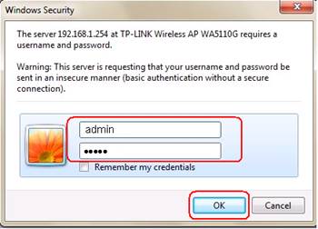 Поскольку функция DHCP на TL-WA5110G/TL-WA5210G отключена по умолчанию, необходимо вручную задать IP-адрес (192.168.1. x ) компьютеру, для совпадения с IP-адресом по умолчанию. Нажмите здесь для подробной инструкции.
