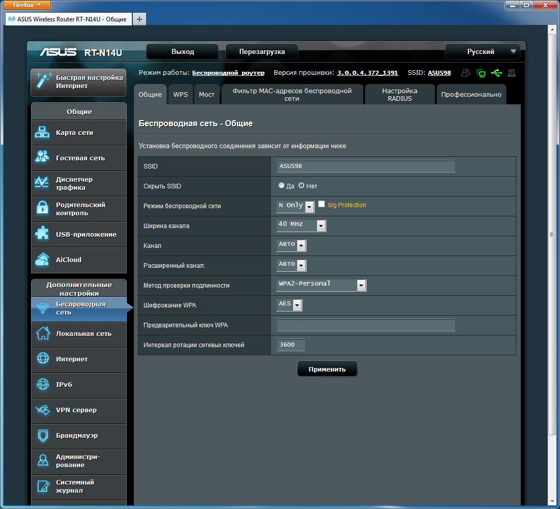Настройка Asus RT-N14U — предельно легкий и простой процесс. Достаточно лишь включить маршрутизатор, подключить к нему необходимые кабели и запустить веб-браузер на любом устройстве с Wi-Fi, например ноутбуке или планшетном компьютере. В открывшейся странице настройки нужно ввести имя пользователя и пароль, предоставленные вашим провайдером — и маршрутизатор сам установит соединение с сетью Интернет! Процедура настройки занимает всего 30 секунд* и состоит из трех простых шагов.