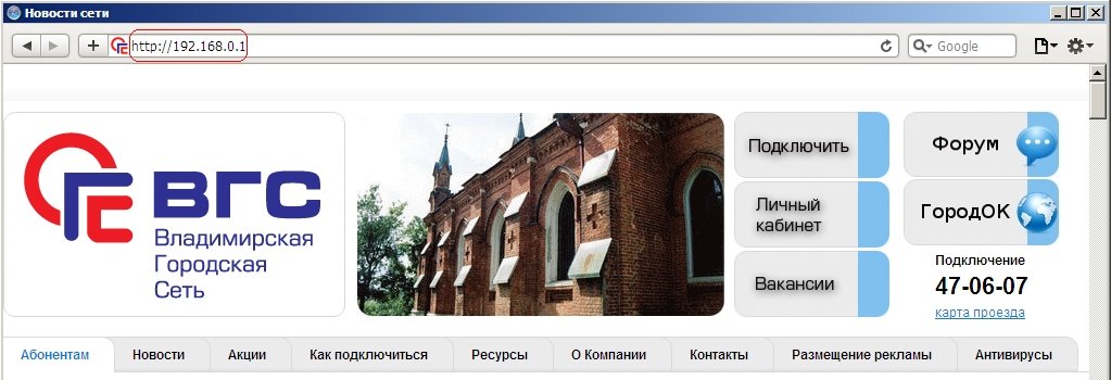 3. Откройте браузер и в адресной строке введите адрес http://192.168.0.1