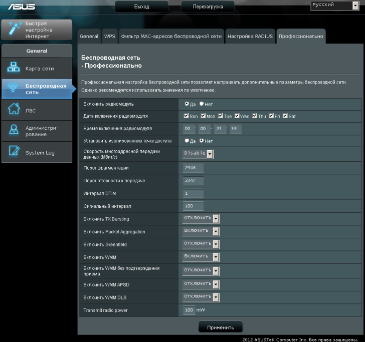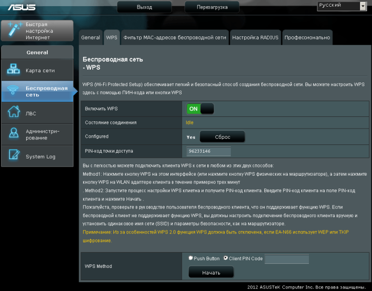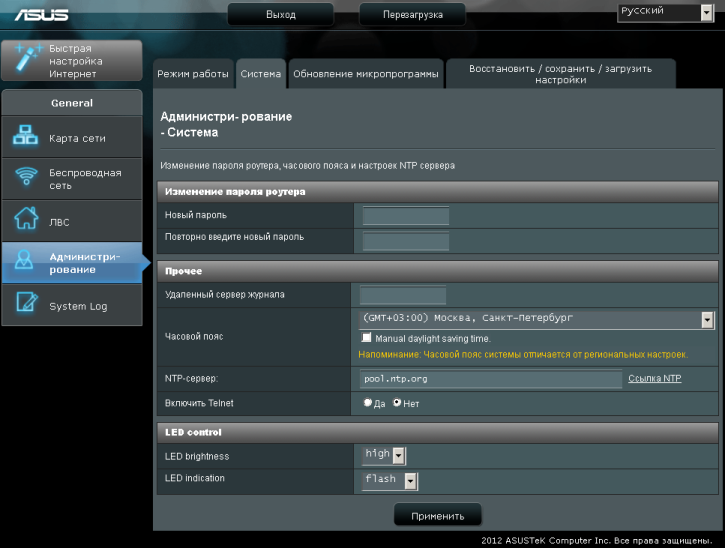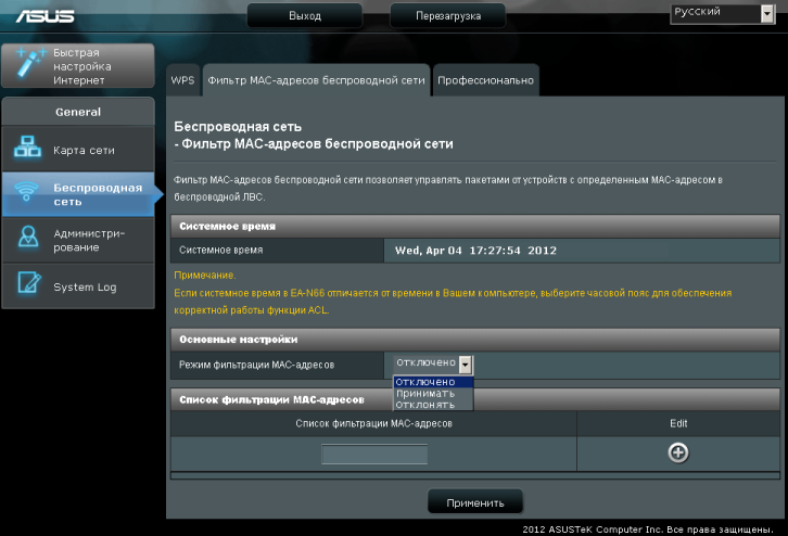 Хотелось бы отдельно отметить, что после применения настроек ASUS EA-N66 перезагружается, хотя, на наш взгляд, в этом далеко не всегда есть необходимость.