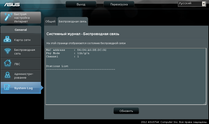 Пункт «System Log» предоставляет администратору возможность изучить журнальную информацию устройства. Справедливости ради стоит отметить, что количество пунктов меню изменяется в зависимости от выбранного режима работы. Так, например, когда EA-N66 выполняет функции точки доступа, в пункте «System Log» добавляется вкладка «Беспроводная связь». Кроме изменения меню, смена режима работы EA-N66 приводит также и к изменению IP-адреса управляющего интерфейса. К сожалению, на сайте производителя отсутствует набор утилит для этой модели, позволяющий обнаруживать беспроводные устройства ASUS в локальной сети. К счастью, утилита Device Discovery, поставляемая для других устройств ASUS, без проблем обнаруживает и EA-N66.