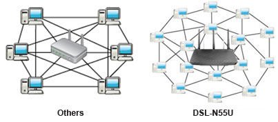 Поддержка до 300 тысяч одновременных соединений означает, что DSL-N55U будет обеспечивать высокую производительность при скачивании множества файлов параллельно.