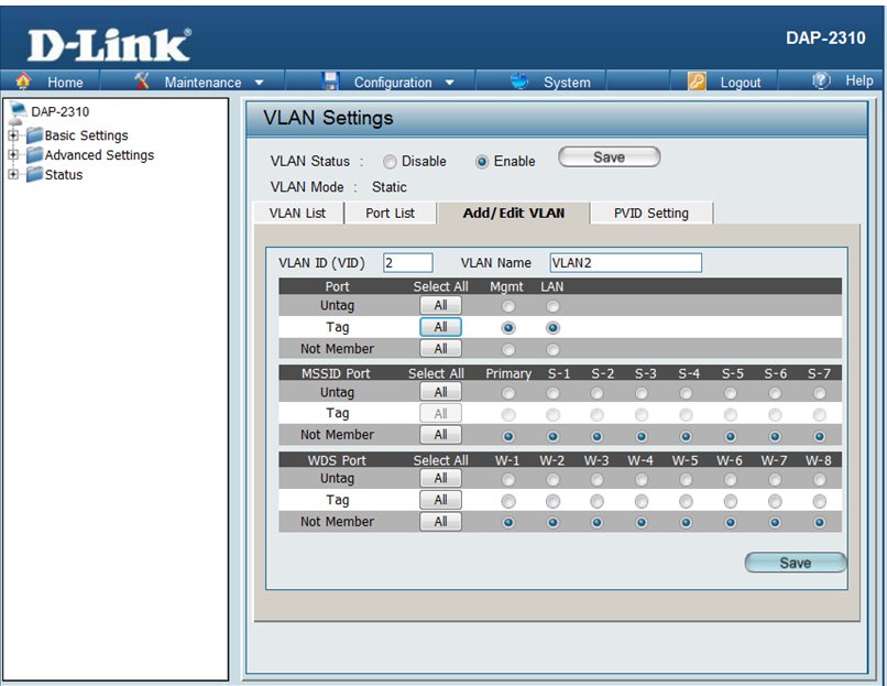 Настройка коммутатора D-Link DAP-2310