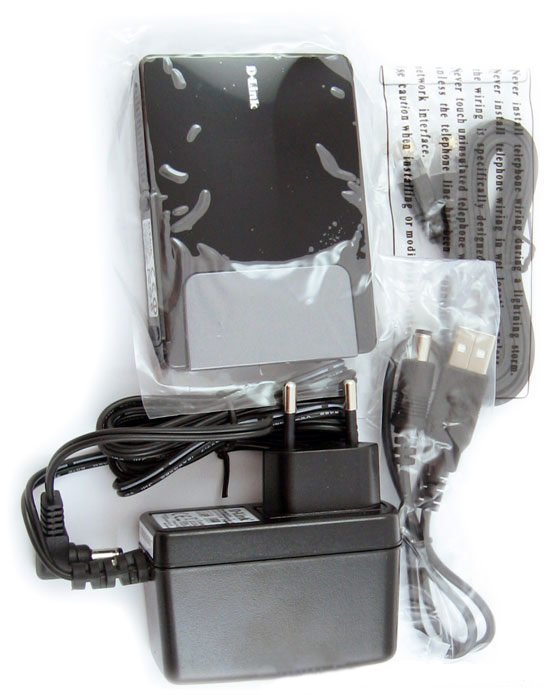 Из особенностей комплектации, кроме черного чехла из кожзаменителя, можно отметить провод подключения питания к разъему USB. Это позволит питать D-LINK DAP-1350 от USB-разъема вашего ноутбука, что может пригодиться при отсутствии поблизости лишней электрической розетки.