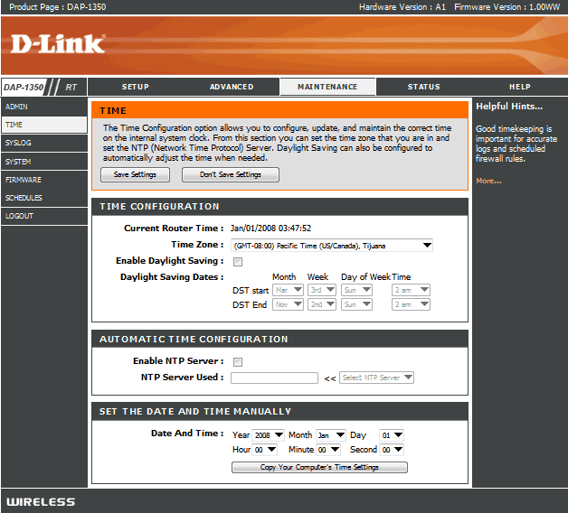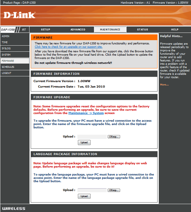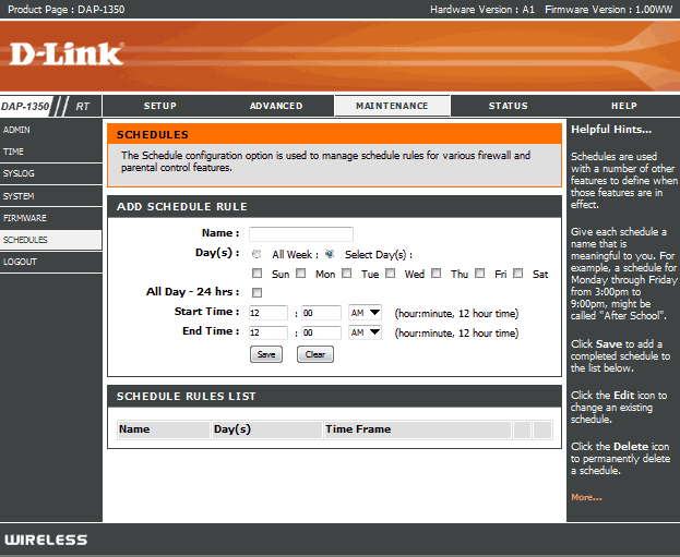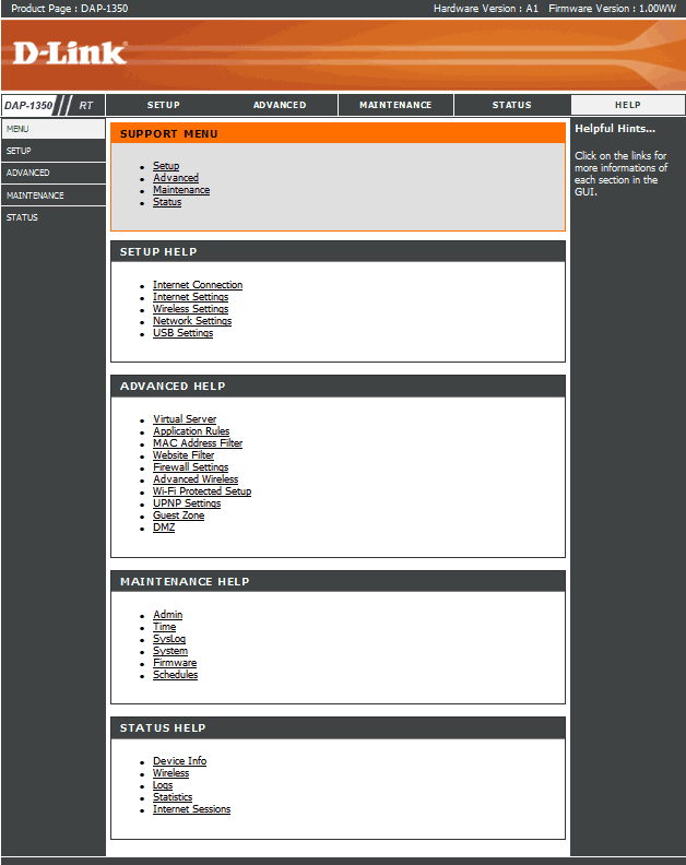 Сетевое решение D-LINK DAP-1350 может похвастаться подробной помощью по каждой функции, выделенной в отдельный раздел «HELP».