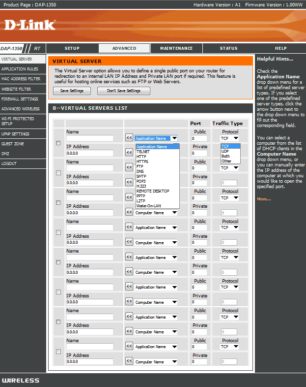 В «VIRTUAL SERVER» можно задать IP локальных машин, на которые будет «пробрасываться» определенные порты из внешнего подключения. Такая функция даст возможность реализовать любые сервера на компьютерах локальной сети, которые будут открыты по прописанным портам для внешнего трафика и подключений.