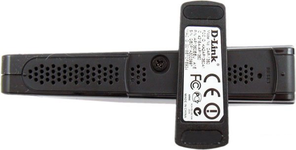 С верхнего и нижнего торца имеются вентиляционные отверстия. Также сверху имеется кнопка быстрой настройки беспроводной сети и разъем USB, закрытый прорезиненной заглушкой. Данный разъем поддерживает технологию SharePort и возможность подключения 3G USB-адаптера. Из 3G USB-адаптеров на данный момент можно воспользоваться только моделями D-Link DWM-152 и D-Link DWM-156. Технология SharePort по заявлению производителя должна обеспечивать возможность подключения к данному разъему USB сетевого принтера или внешнего накопителя USB для хранения на нем ваших данных, что предоставит доступ к ним по сети.