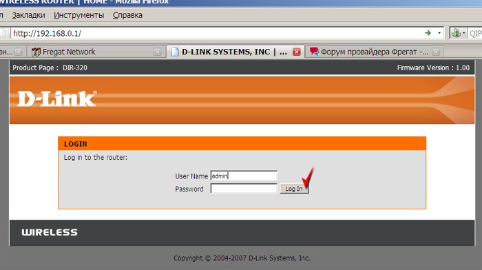 После ввода логина и пароля, нажмите отмеченную кнопку и вы попадете в административную страницу роутера.