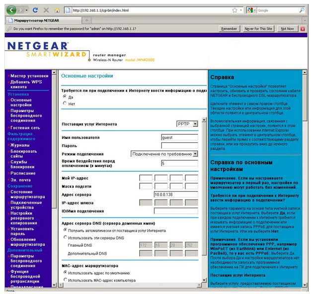 Для настройки беспроводного WI-FI маршрутизатора NETGEAR JWNR2000 можно использовать утилиту Smart Wizard (аналог NetFriend от ZxXEL) и русскоязычный Web-интерфейс. Smart Wizard способен задать лишь базовые параметры, всё самое интересное скрыто в «браузерных» окнах. Умолчальные IP для доступа присутствуют на нижней стороне роутера.