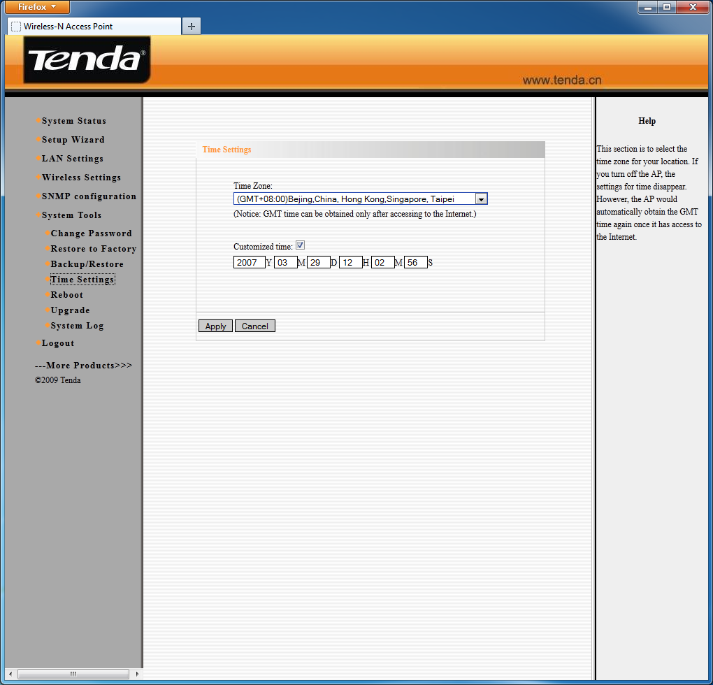 Системные опции традиционны для данного класса устройств — изменение пароля, обновление прошивки, работа с конфигурацией, настройка встроенных часов, перезагрузка, журнал системных событий. Последний сохраняется только в точке доступа и не отличается информативностью (так, в нем никак не отражаются подключение беспроводных клиентов).