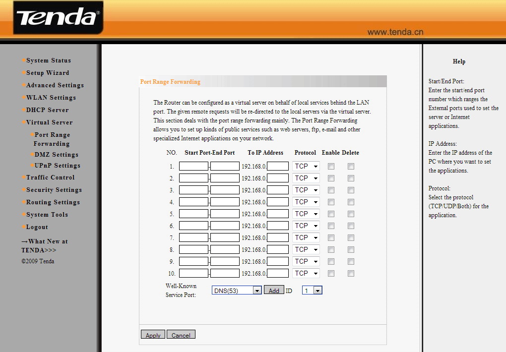 Маршрутизатор позволяет пробросить до десяти диапазонов TCP и UDP портов.