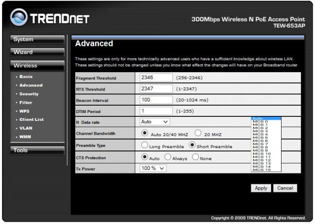 Пожалуй, самыми обширными и основными настройками для всех устройств с функциями точки доступа являются настройки Wi-Fi сети. Не стала исключением и модель TRENDnet TEW-653AP. Здесь также имеется достаточно серьезный набор опций.