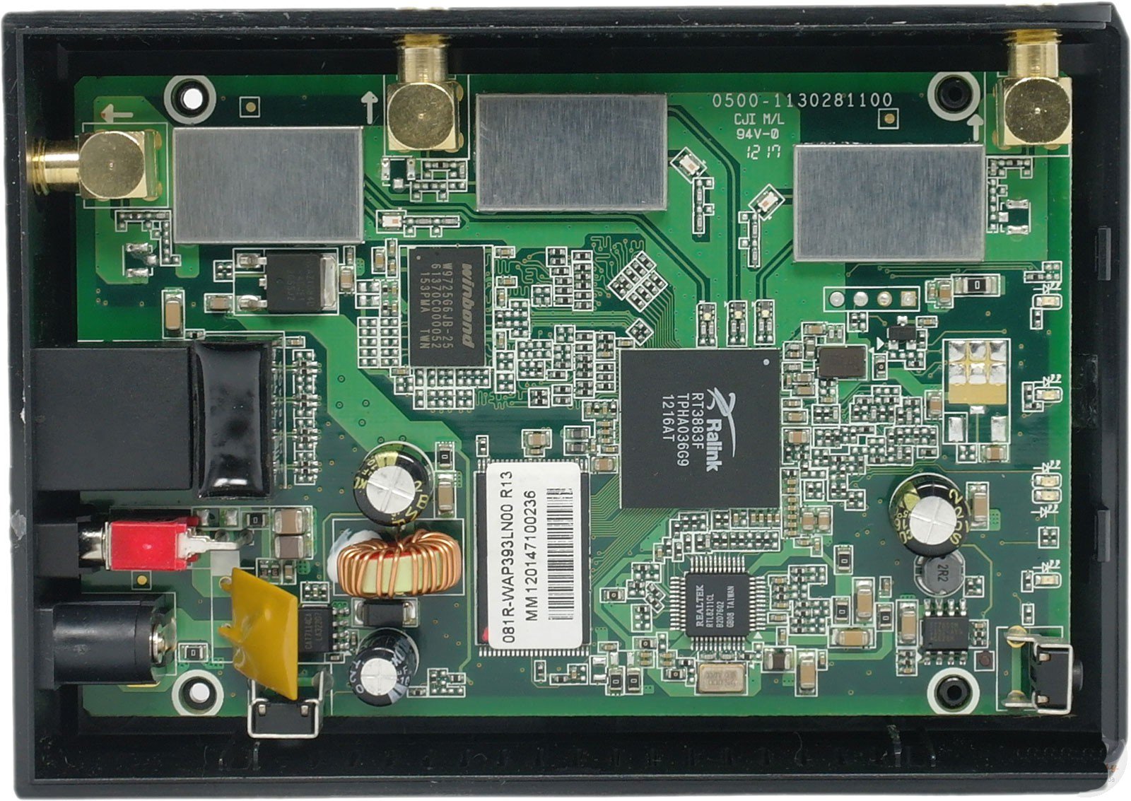 Главным вычислительным узлом TRENDnet TEW-690AP стал процессор Ralink RT3883F, который работает на частоте 500 МГц и обеспечивает быстродействие MIPS 74Kc, что позволяет ему обрабатывать 74Kс миллионов инструкций в секунду. Здесь также распаяна одна микросхема оперативной памяти DDR2 SDRAM производства Winbond W9725G6JB-25 емкостью 256 Мбит и рабочей частотой 800 МГц.