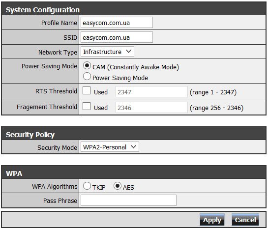 Настройки подключения к беспроводной сети Wi-Fi более расширены, в сравнении с пошаговым алгоритмом, но они также не перенасыщены излишним функционалом. Все просто: указываем настройки вручную и вводим пароль доступа к сети.