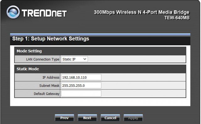 Функционал предложенного в модели TRENDnet TEW-640MB WEB-интерфейса достаточно ограничен, но если рассматривать эту особенность со стороны простоты и удобства настройки, то в данном решении нет ничего лишнего. Есть только те функции, которые необходимы для работы с мультимедийным трафиком и подключения бытовых устройств к беспроводным маршрутизаторам или точкам доступа для выхода в интернет. Именно максимальная простота и удобный алгоритм пошаговой инсталляции должен обеспечить этой модели заслуженную популярность.