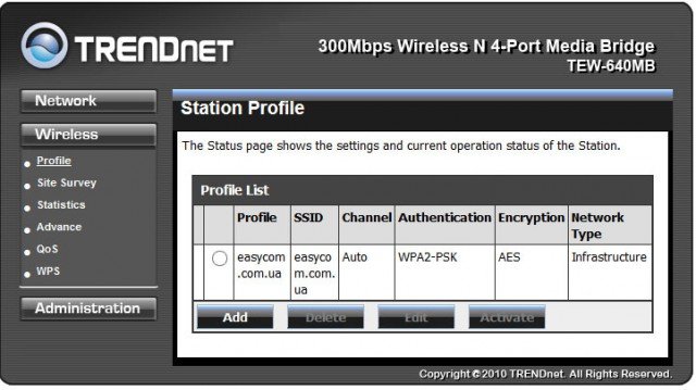 - Wi-Fi клиент TRENDnet TEW-640MB;