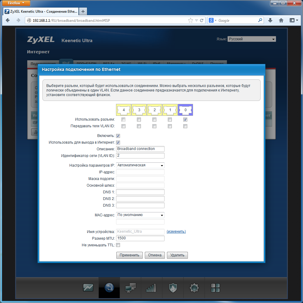 Настройка коммутатора Zyxel Keenetic Ultra