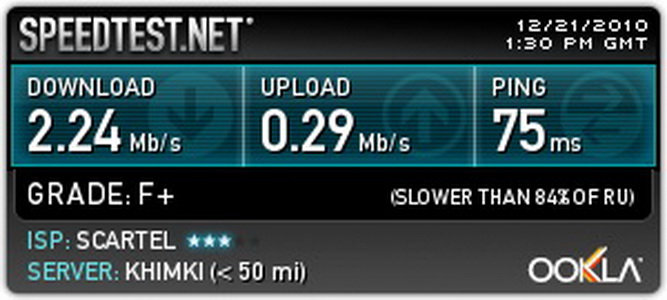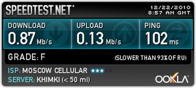 Наверняка результат был бы и лучше, если бы тест проводился в другое время (не в 5 часов вечера), а также возможности подключения модема через удлинитель.