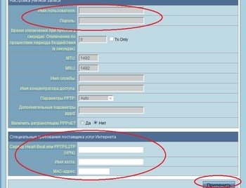 7.IP-адреса и DNS в зависимости от провайдера предоставляются автоматически или их следует прописывать вручную. Указываем в окне имя пользователя и пароль, согласно требованиям оператора, и привязку, если надо, по физическому адресу: