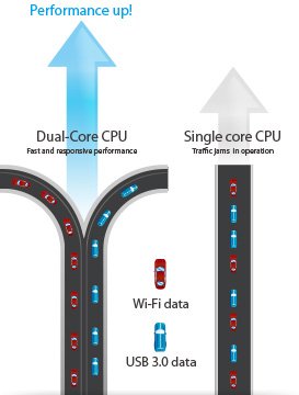 За высокую скорость обработки передаваемых маршрутизатором данных отвечает двухъядерный процессор, поэтому воспроизведение потокового HD-видео всегда будет плавным, «лаги» в онлайн-играх – минимальными, а качество звука интернет-телефонии – идеальным.