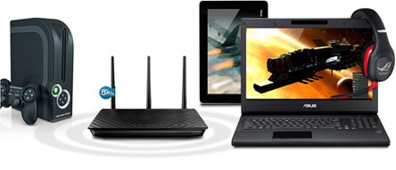 Общая скорость передачи данных маршрутизатора ASUS RT-AC68U составляет 1900 Мбит/с (1300 Мбит/с в диапазоне 5 ГГц по стандарту 802.11ac и 600 Мбит/с в диапазоне 2,4 ГГц по стандарту 802.11n), что делает эту модель самой высокоскоростной среди доступных на настоящий момент.